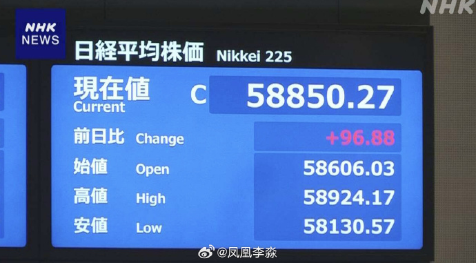 【16】日本股市涨不停。今天收盘58850.27点,比昨天涨96.88点,连续第三个交易日刷新收盘历史最高纪录。这一个月,日经就已狂飙超过5500日元。