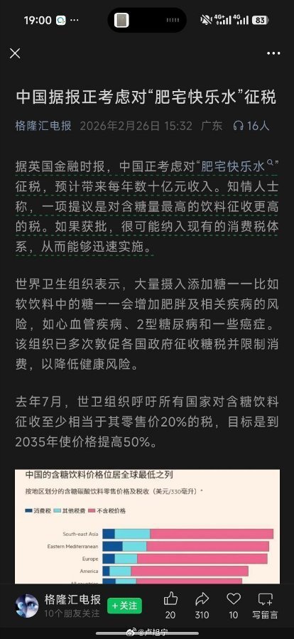 【4】中国据报正考虑对“肥宅快乐水”征税