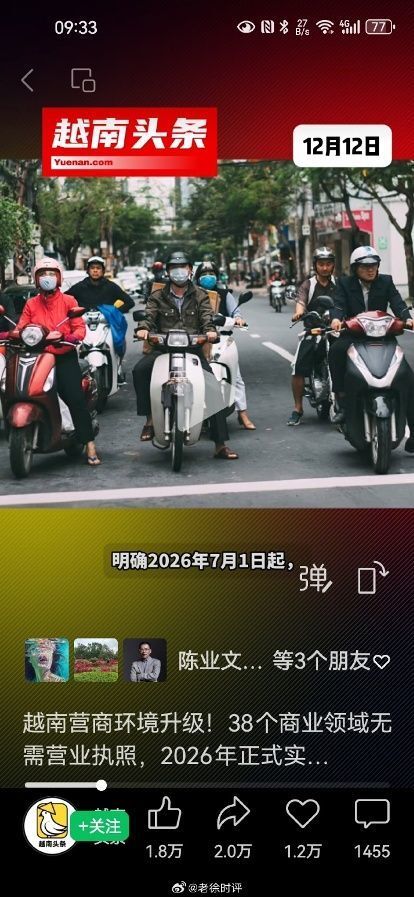 【16】越南令人刮目相看了,营商环境升级。38个商业领域无需营业执照,2026年正式实施。