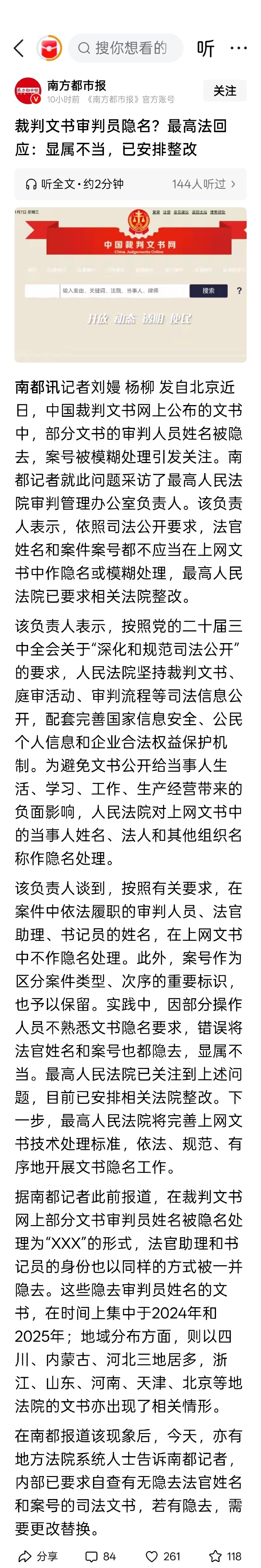 【7】裁判文书审判员隐名?最高法回应:显属不当,已安排整改