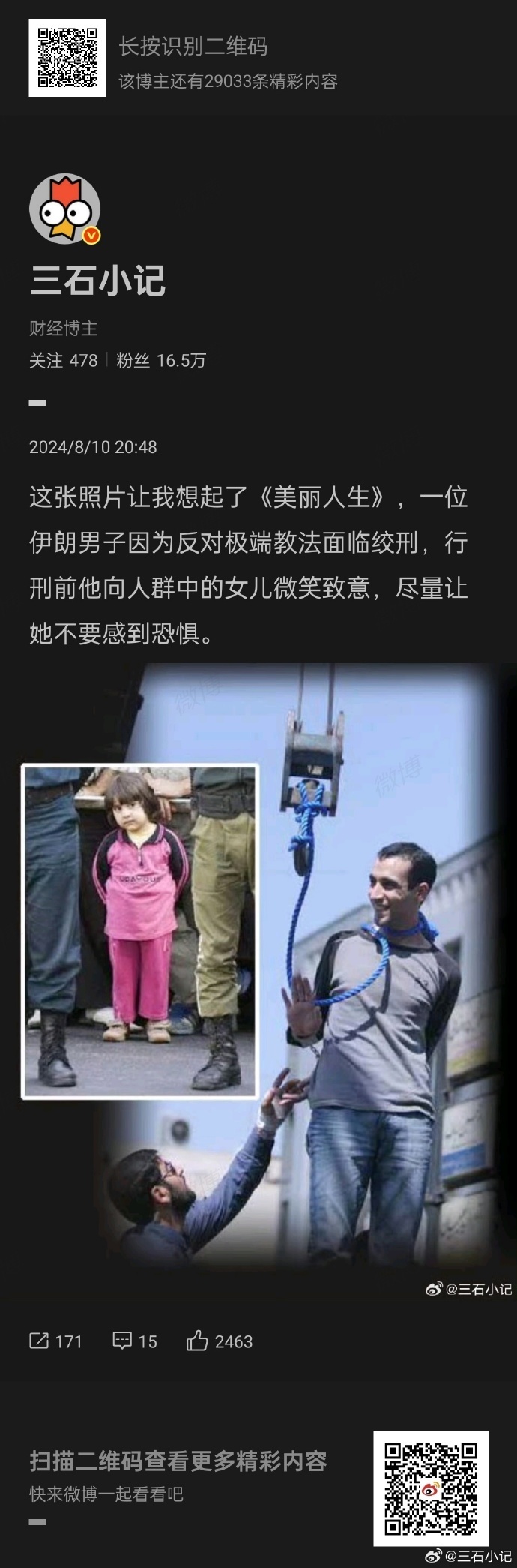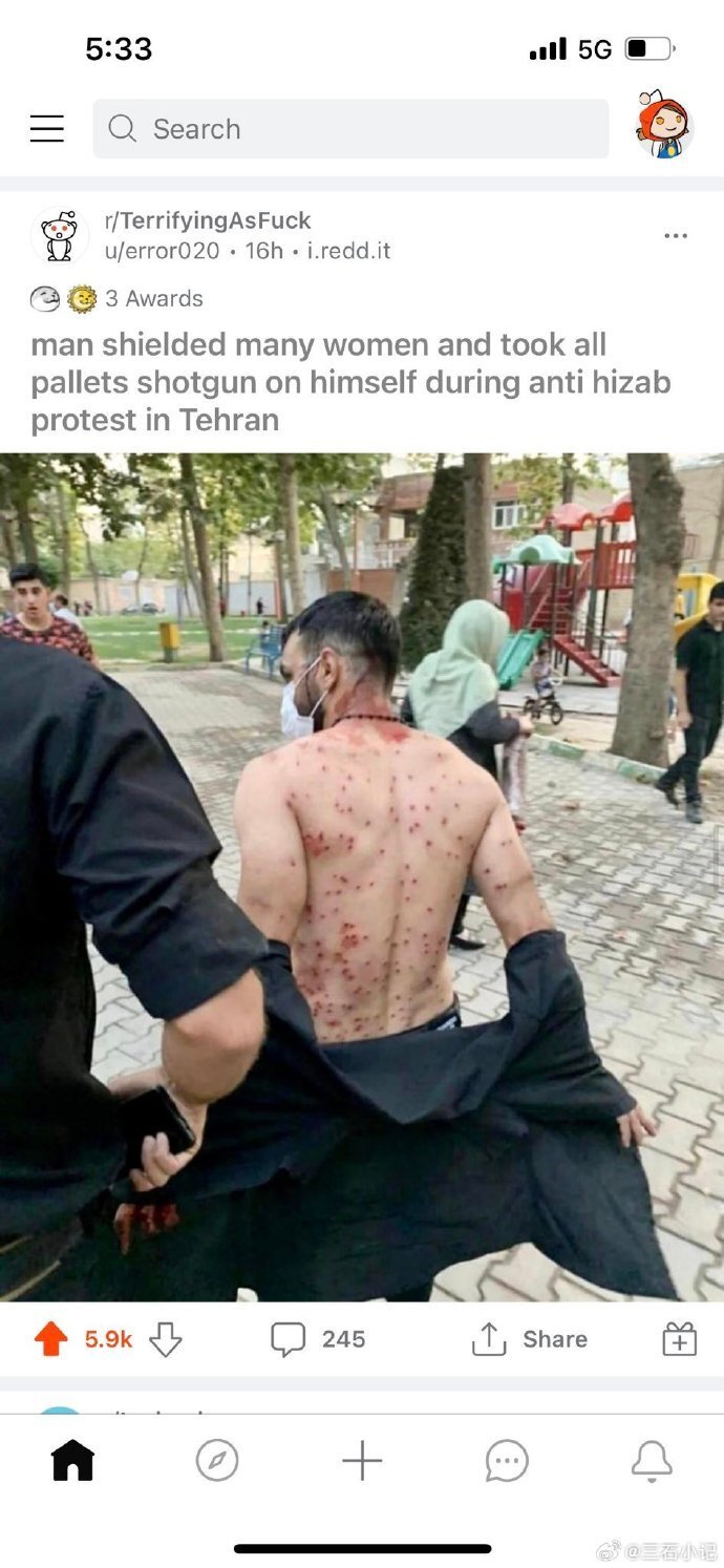 真别瞧不起伊朗,伊朗人的抗争一直都没有停。图一,2022年头巾革命时伊朗男子挡在女性前面阻挡橡皮子弹。图二,伊朗男子反对极端教法面临极刑。
