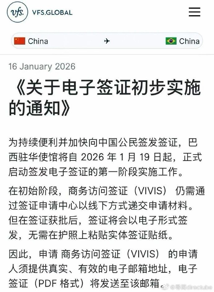 【6】巴西官宣从1月19日起正式对中国公民开放电子签证