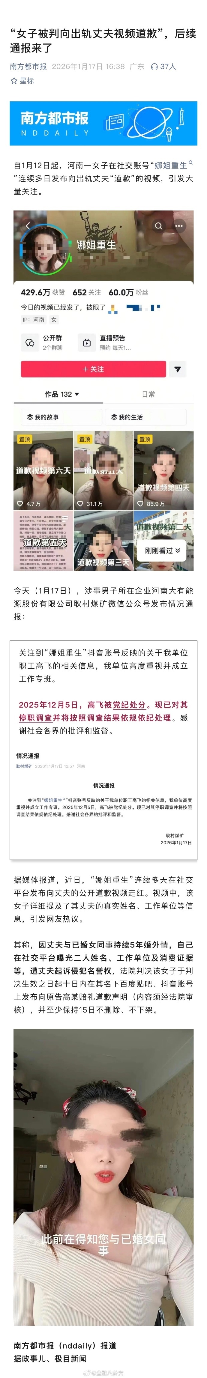 【4】“女子被判向出轨丈夫视频道歉”,后续通报来了
