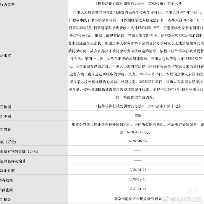 【5】感受一下海淀名师的收入,两年不到,赚了1580万,然后被罚6700万,这就是人生