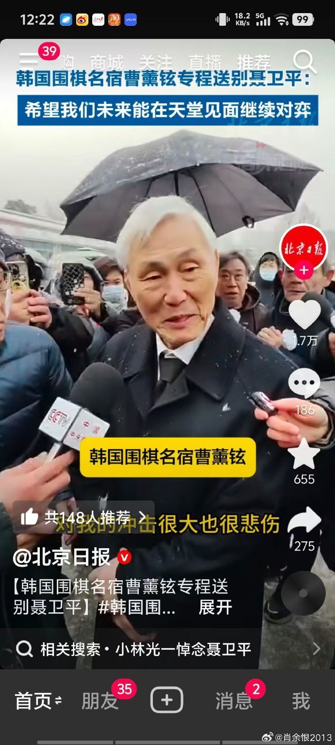 【8】是对手,也是朋友。曹熏铉如此高龄专程从韩国过来送别聂棋圣