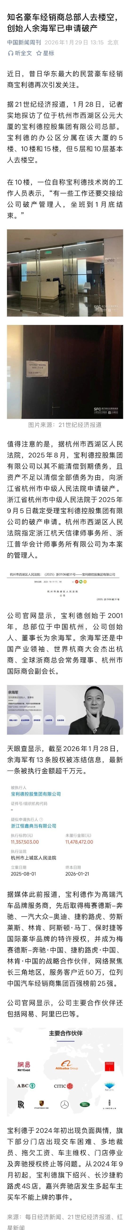 【10】知名豪车经销商总部人去楼空,创始人余海军已申请破产
