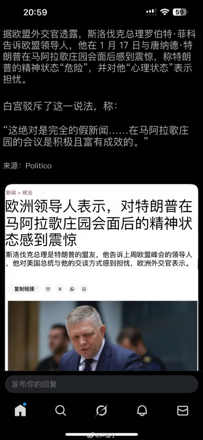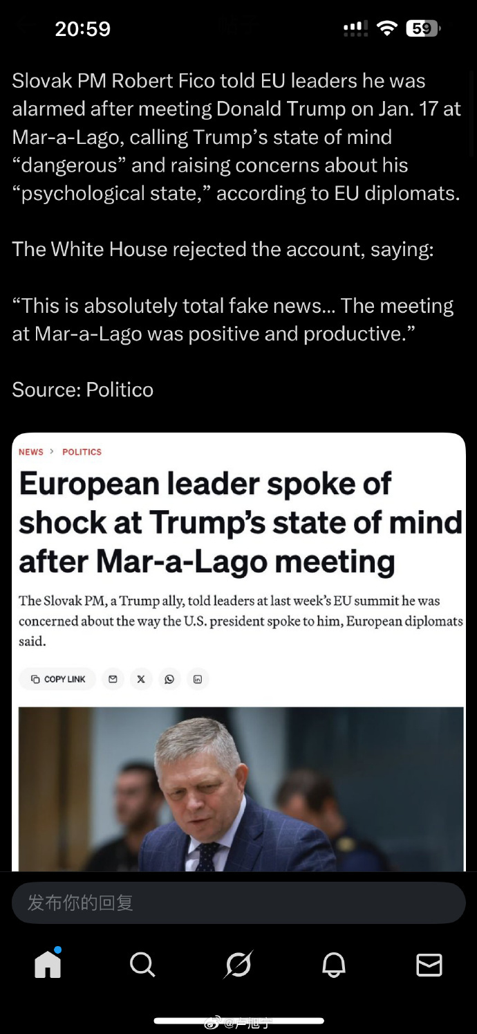 【22】斯洛伐克总理在马拉狗庄园会晤过川普后,告诉欧洲领导人,他被川普的精神状态吓坏了……俩人其实关系还不错