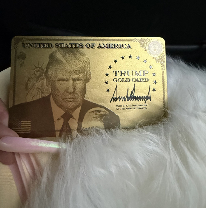 随后,麻辣鸡在X上晒出特朗普为她颁发的“金卡”(特朗普创立的代表在美国永久居留权的金卡签证)。