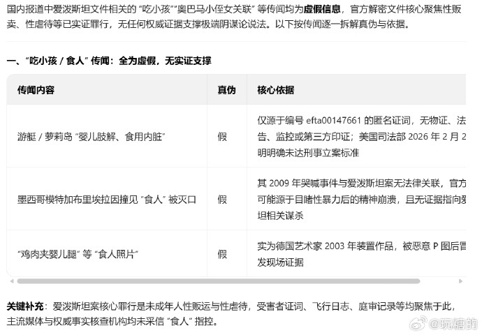 【14】根据豆包回答,目前网传的爱泼斯坦案件中吃小孩、奥巴马虐儿童等均为假的。国内网上居然当成真的讨论。