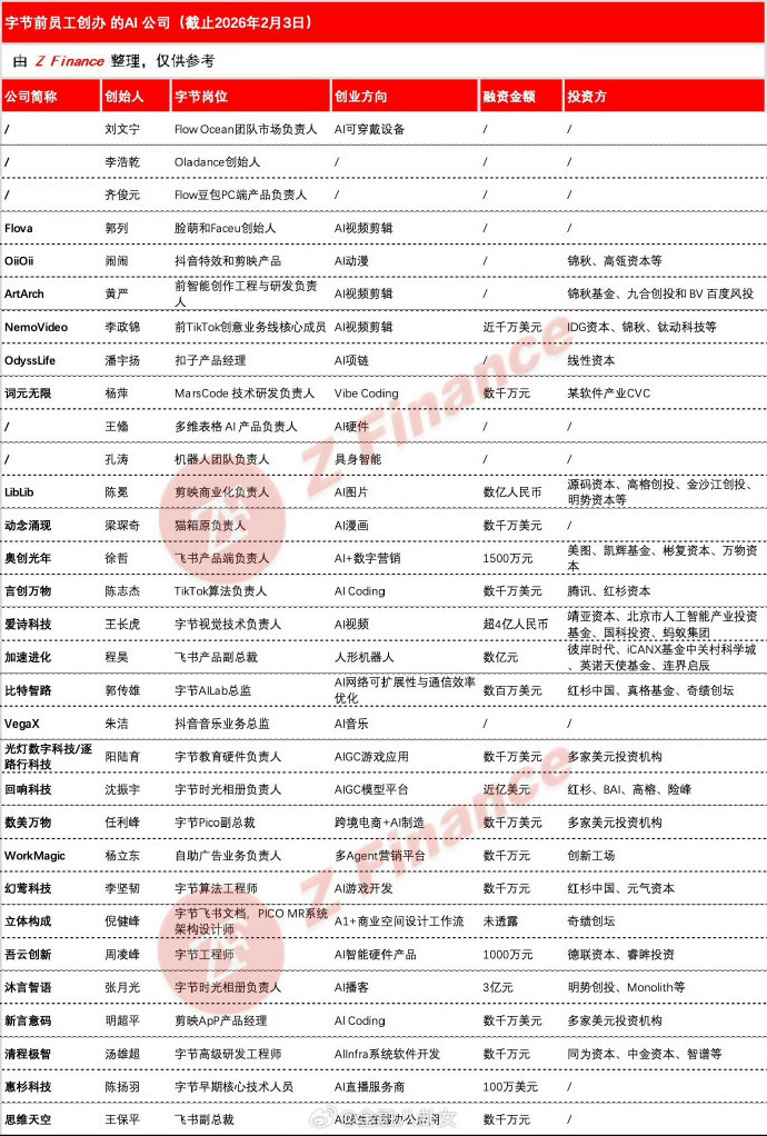 【9】字节前员工创办的AI 公司汇总(截止2026年2月3日)