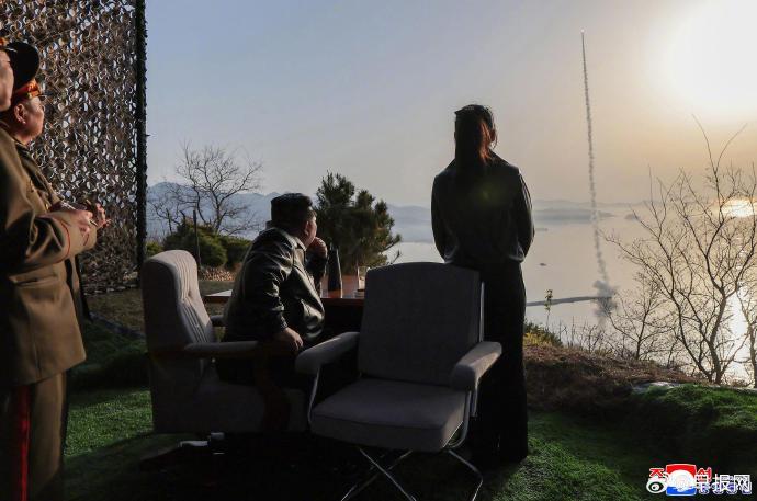 朝中社星期一(4月20日)报道,朝鲜导弹总局前一天(19日)进行改良版短程地对地弹道导弹“火星炮-11丁”型战斗部(弹头)威力评估试验。朝鲜领导人金正恩携女儿金珠爱观摩试射。