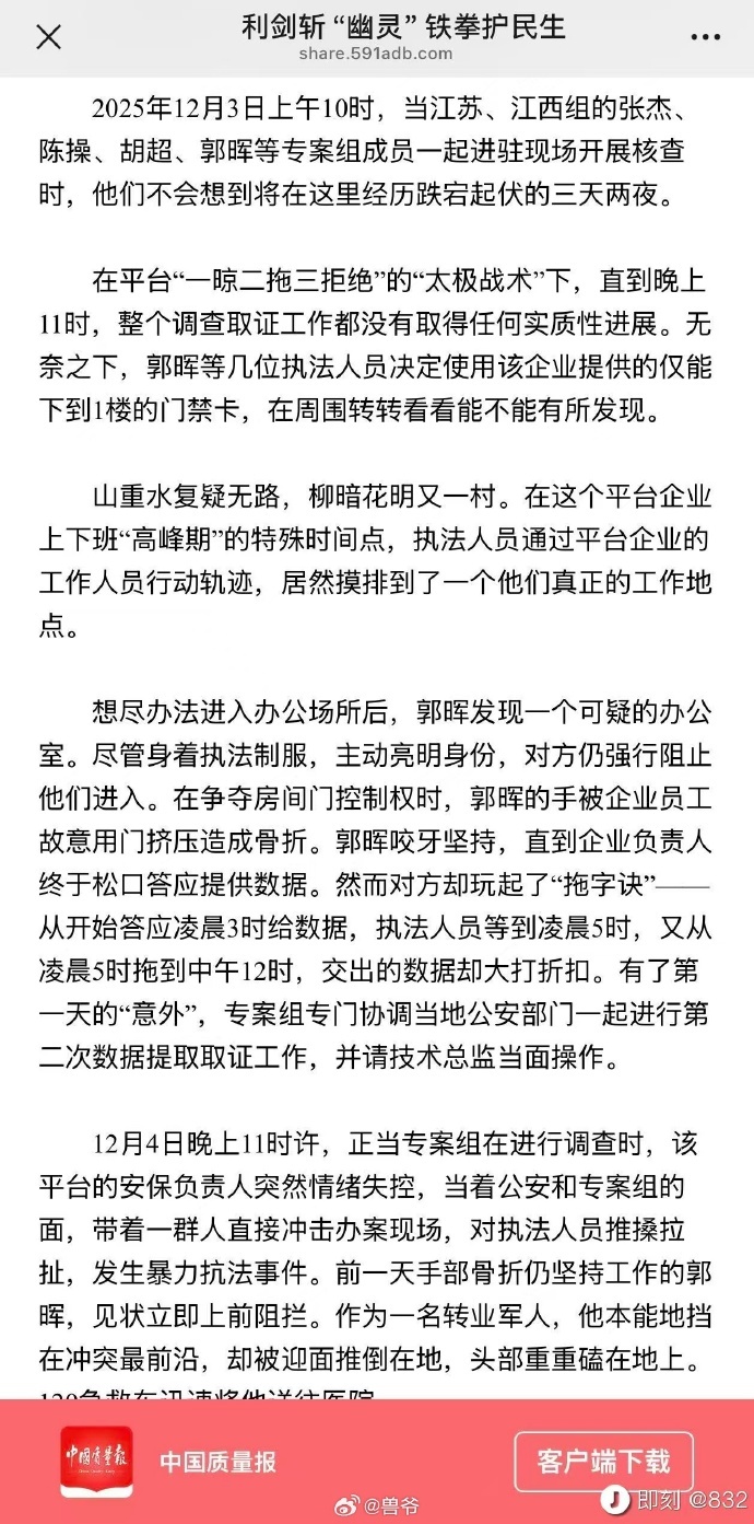 国家市场监管总局主管的《中国质量报》,披露拼多多暴力抗法的全过程……