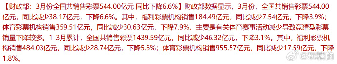 【1】1-3月,彩票少卖了46亿。人均买彩票100元。