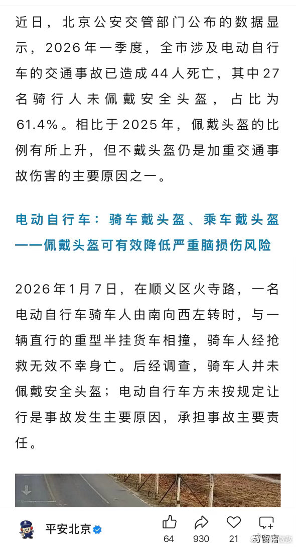 【4】今年一季度,北京市涉及电动自行车的交通事故,已死亡44人……